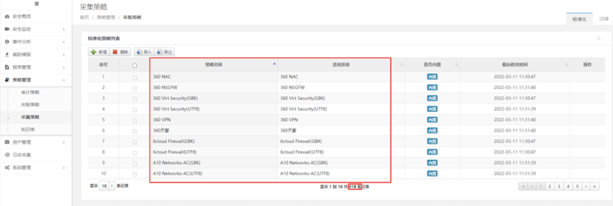 evo视讯真人官网DCSSA日志审计系统内置丰富的标准化策略,覆盖800余种主流的系统和设备,支持2万余种日志,精确快速匹配策略,操作便捷,一步到位,轻松解决企业面临的设备繁多、日志信息难以集中管理的困境,能帮助业务新手秒变专家。在资产管理模块维护资产时,只需要选择【开启智能绑定采集器】,DCSSA日志审计系统就会自动根据资产系统类型,精确匹配正确的标准化策略。
