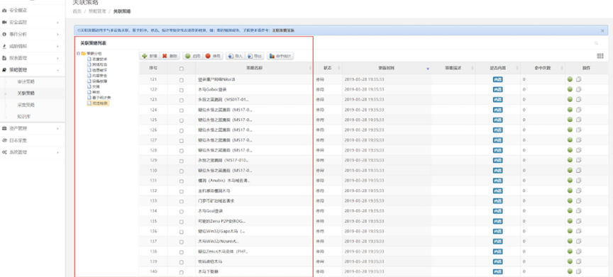 检验日审功能的另一个试金石是关联分析能力。针对日志自动化、集中度、关联度不够的问题,evo视讯真人官网DCSSA日志审计系统支持基于规则、统计、情报的分析模型,内置丰富的安全策略模板、高效的实时关联分析能力、灵活的审计策略,充分发挥日志分析及审计机制的最大效力。帮用户实现对日志的关联性处理,让用户能有效处理纷杂无序的日志信息。