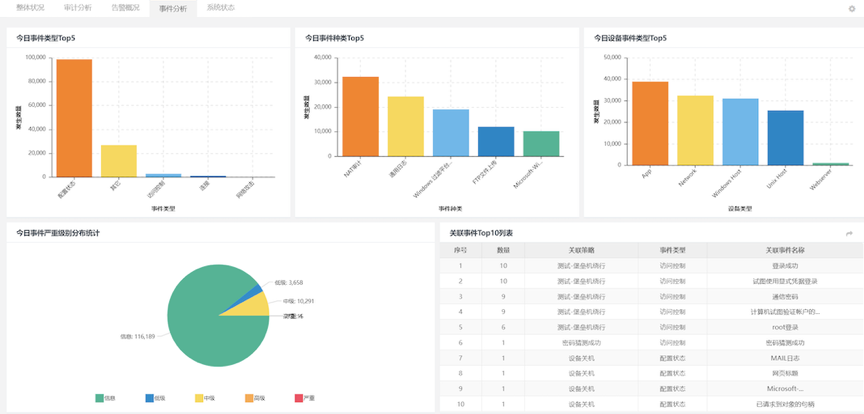 evo视讯真人官网DCSSA日志审计系统可将企业内部所有的网络设备、安全设备、操作系统、服务器、数据库和其它应用系统等产生的大量信息,进行统一收集、标准化后进行关联性分析,协助用户在合规的基础上最大化的发挥日志分析的功能,及时协助用户发现网络中需要关注的安全事件。该产品方案,既是一款合规方案里必备产品,也可以放在平台分析方案里,生成相关告警和分析报告,一举多得。